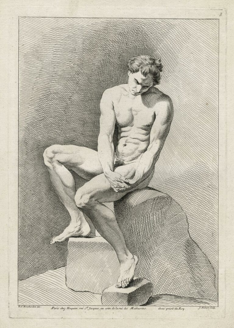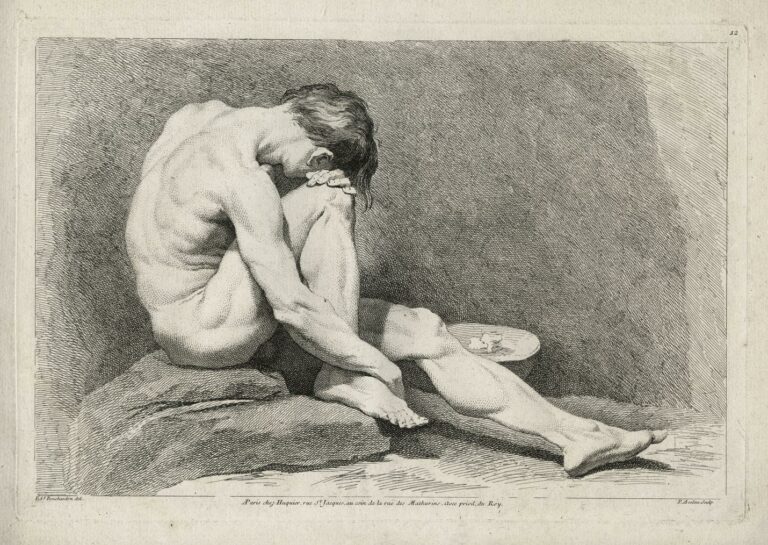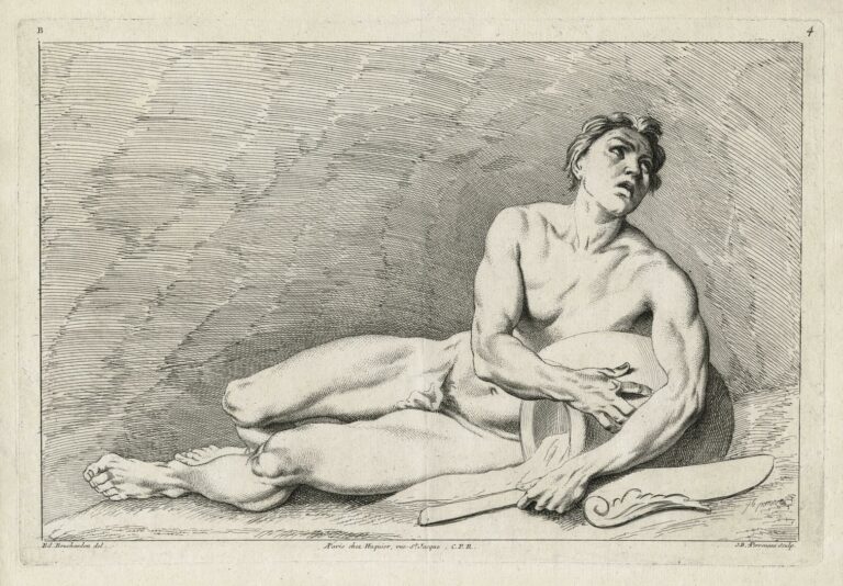Principalement connu pour ses travaux de sculpteur, Bouchardon était également un excellent dessinateur, et ses nombreux dessins furent collectionnés par les élites de son temps. La production graphique de Bouchardon fût largement diffusée en Europe par le biais de recueils regroupant des gravures réalisées d’après ses dessins.