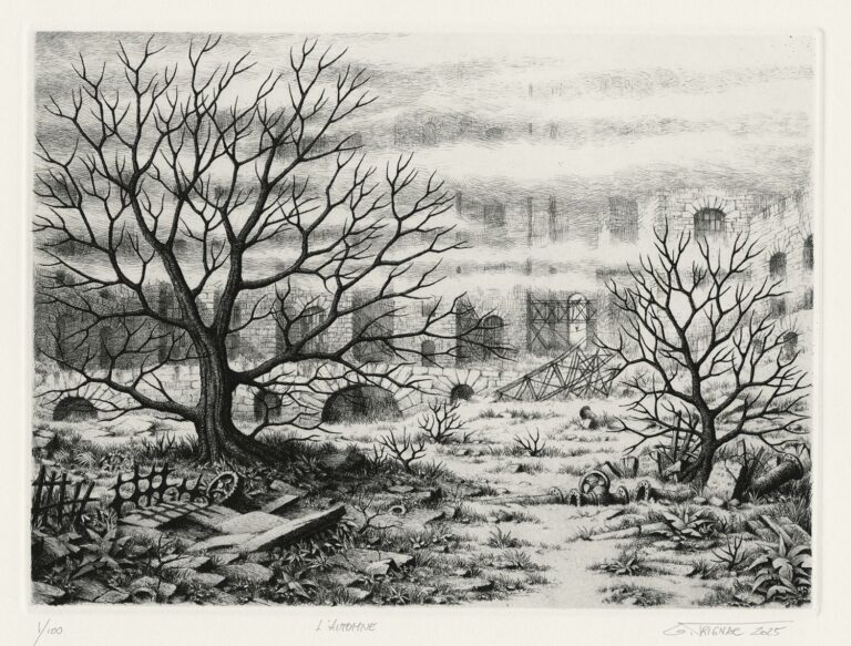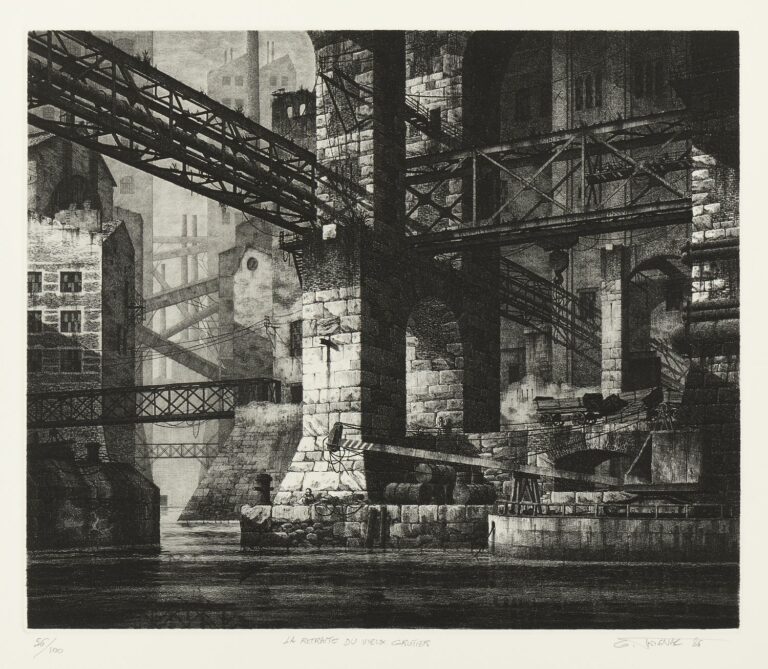 Tout comme Piranèse dont il se veut le disciple, Gérard Trignac met à profit une formation initiale d’architecte (suivie à Bordeaux, sa ville natale) pour graver sur le cuivre ses constructions rêvées. S’il partage avec Piranèse le goût pour le noir, les effets dramatiques et l’accumulation de monuments, Trignac adapte cependant ces éléments à une esthétique contemporaine marquée par le béton, le métal, l’industrie, la science-fiction et la bande dessinée. Ses paysages désertés, inspirés de villes réelles (série de vues de Paris illustrant l’Ode à Paris de Philippe Soupault) ou imaginaires (notamment tirées des Villes Invisibles d’Italo Calvino), laissent transparaître, outre l’hommage aux graveurs du passé (non seulement Piranèse mais aussi Rodolphe Bresdin), une certaine angoisse du présent et la peur d’un futur déshumanisé. Son souci du beau travail l’incite à assurer lui-même les tirages, toujours restreints, de ses eaux-fortes reprises au burin et à la pointe sèche.