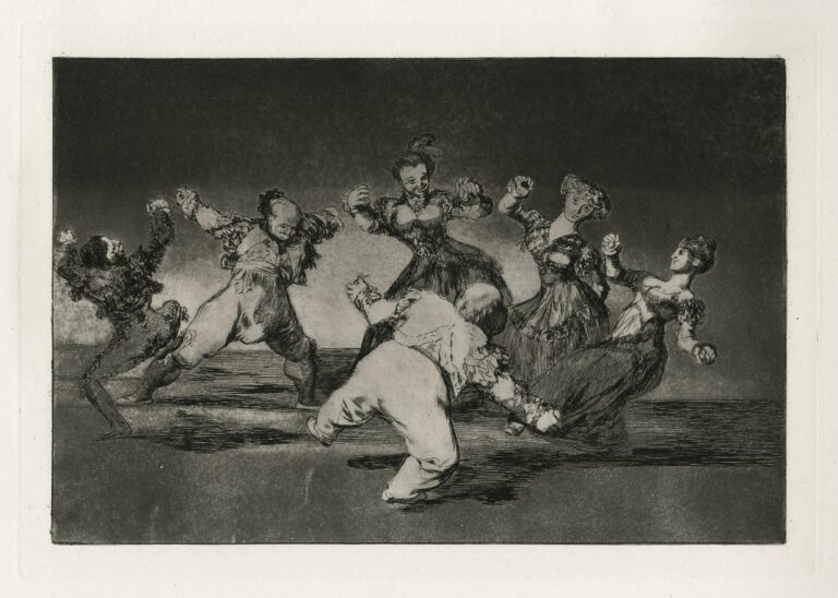 Autant qu’un peintre hors du commun, qui donna plusieurs tableaux parmi les plus célèbres de l’histoire de l’art, Francisco Goya y Lucientes fut graveur. Soigneusement préparées par de nombreux dessins préparatoires (qui se distinguent par un usage très libre du lavis), réalisées à l’eau-forte et à l’aquatinte (technique nouvelle dans laquelle Goya parvint à exceller), ses estampes, loin des scènes de genre et surtout des portraits qui firent son succès, donnent de l’artiste une image plus personnelle, plus proche de l’homme des Lumières visionnaire (jusqu’au fantastique) et socialement engagé (jusqu’à l’exil) que Goya était. Au nombre de deux cents quatre-vingt-onze (parmi lesquelles vingt-trois lithographies auxquelles Goya s’essaya à la fin de sa vie), elles forment pour la plupart les quatre séries extrêmement fameuses des Caprices, des Désastres de la guerre, de La Tauromachie et des Proverbes. Peu commercialisées et peu connues du vivant du peintre-graveur (dans un pays où la tradition de l’estampe originale était pratiquement inexistante), elles contribuèrent au XIXe siècle, et plus encore que ses peintures, à faire de Goya un modèle de l’artiste génial.