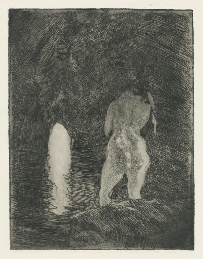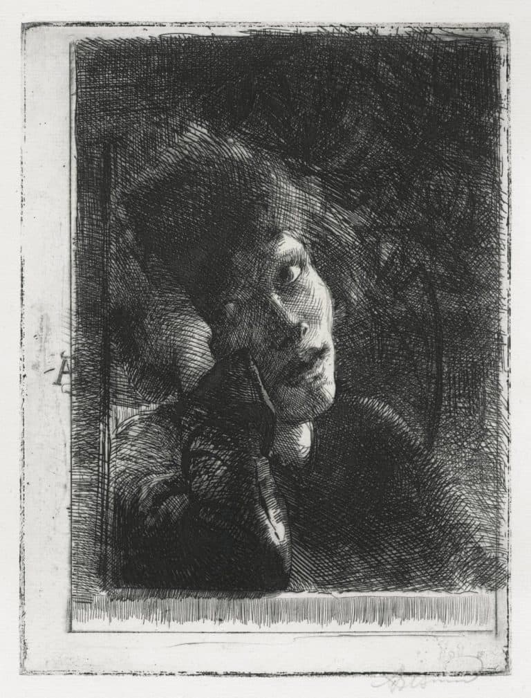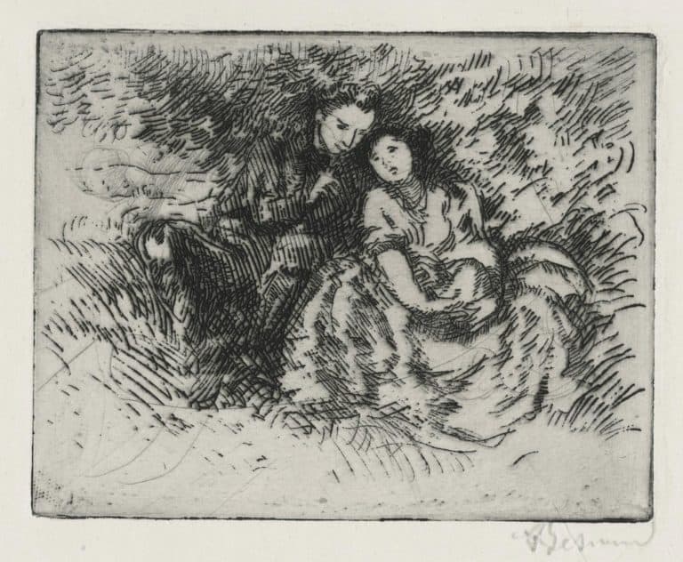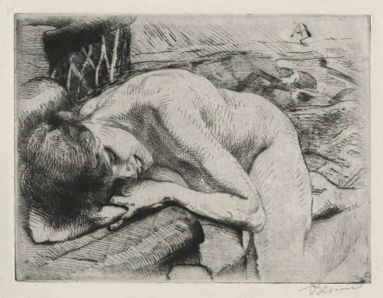 Si Albert Besnard, fort célèbre de son vivant et alors comblé d’honneurs, a été longtemps oublié, ses estampes n’ont jamais cessé d’être connues des amateurs. En effet, à côté d’un œuvre immense, où se trouvent aussi bien portraits, études de femmes, grands décors (dont celui de la Comédie-Française) et tableaux orientalistes, réalisés à l’huile, à l’aquarelle ou au pastel, prennent place dans la production de Besnard un peu plus de deux cents estampes. Exécutées souvent à l’eau-forte et à la pointe sèche (parfois sur un fond d’aquatinte), elles révèlent une autre facette de l’artiste, sombre, voire terrible. Les deux suites La Femme et Elle en sont les meilleurs exemples qui représentent l’une la survenue de la mort dans la vie quotidienne et l’autre la déchéance d’une femme d’abord heureuse.