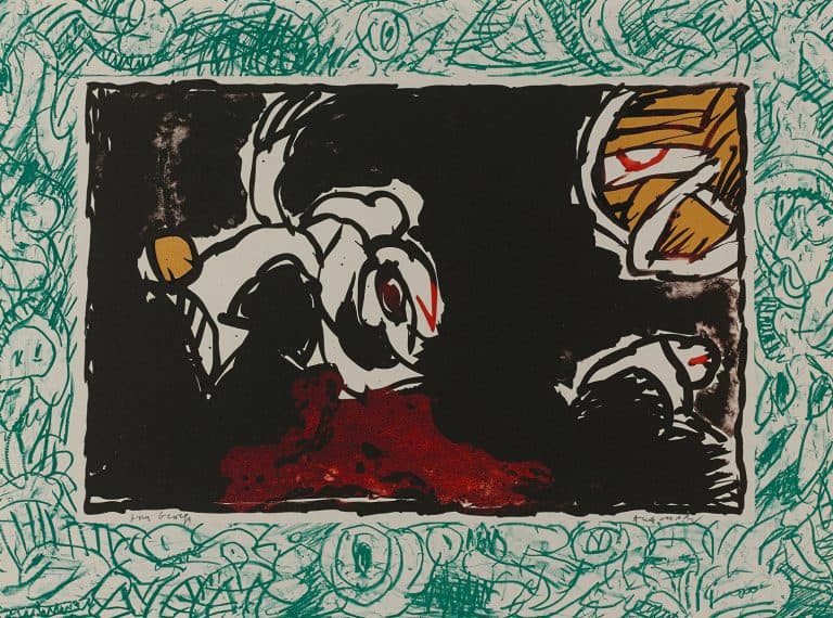Born in Brussels in 1927, Pierre Alechinsky was admitted to the prestigious La Cambre school in 1944, where he studied book illustration and typography. In 1947, he joined the Jeune Peinture Belge group, which enabled him to exhibit his work at the Lou Cosyn gallery. As a painter, draughtsman and engraver, Pierre Alechinsky’s work has been the subject of numerous exhibitions and is widely represented in institutional collections around the world.