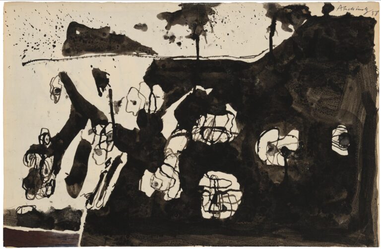 It was during this period that Alechinsky began a correspondence with Shyriu Morita, a key figure in the development of avant-garde Japanese calligraphy. This meeting was decisive for the Belgian artist, who became fascinated by this art and its techniques. This affinity is particularly evident in his drawings, where the use of brush and Indian ink is recurrent.