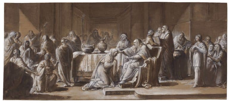 Formé d’abord à la peinture dans l’atelier de Jean-Louis Lagrenée, Jean Bardin collabora avec Jean-Baptiste Marie Pierre avant de remporter le premier prix de l’Académie royale de peinture et de sculpture en 1765. Agréé à l’Académie en 1779, il exposa régulièrement au Salon jusqu’en 1786, date à laquelle il accepta la direction de l’École de dessin d’Orléans. Attentif à la réussite de sa mission, il se retira progressivement de la carrière de peintre avant de tomber dans un profond oubli dont seul son rôle de professeur auprès de Jean-Baptiste Regnault fut épargné.