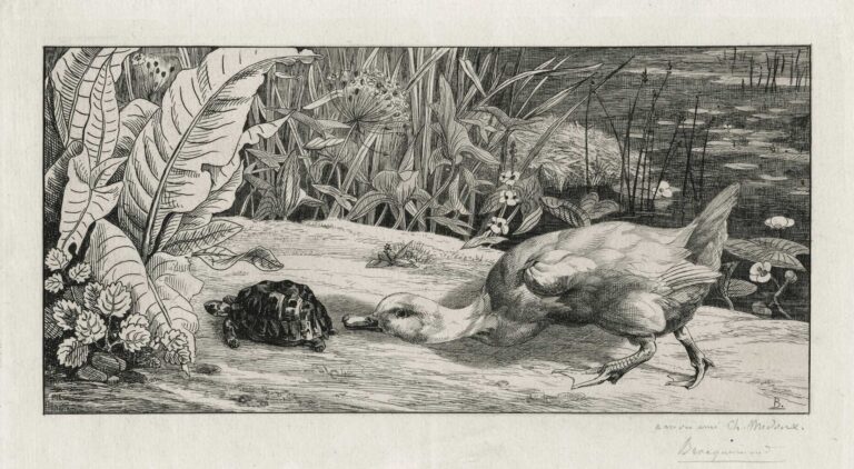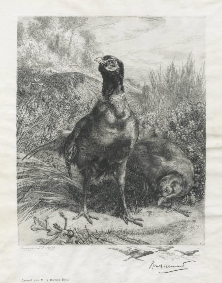 Élève de Joseph Guichard, qui lui transmit la leçon d’Ingres, Félix Bracquemond pratiqua la peinture jusqu’en 1869 (il présenta à plusieurs reprises des portraits au Salon). Toutefois, c’est dans l’art de la gravure (mais également dans celui de la céramique) qu’il s’illustra. Proche des avant-gardes littéraire et artistique, il prit part aussi bien au Salon des refusés de 1863 qu’aux expositions impressionnistes des années 1870. Par ailleurs, il s’engagea vivement dans la défense de son art et fut successivement membre fondateur de la Société des aquafortistes et de la Société des peintres-graveurs. Rénovateur de l’eau-forte et l’un de ses principaux représentants dans la seconde moitié du XIXe siècle, Bracquemond a laissé un œuvre immense (près de neuf cents pièces) au sein duquel dominent portraits, paysages et représentations d’oiseaux (où se perçoit le mieux le japonisme pionnier de l’artiste).