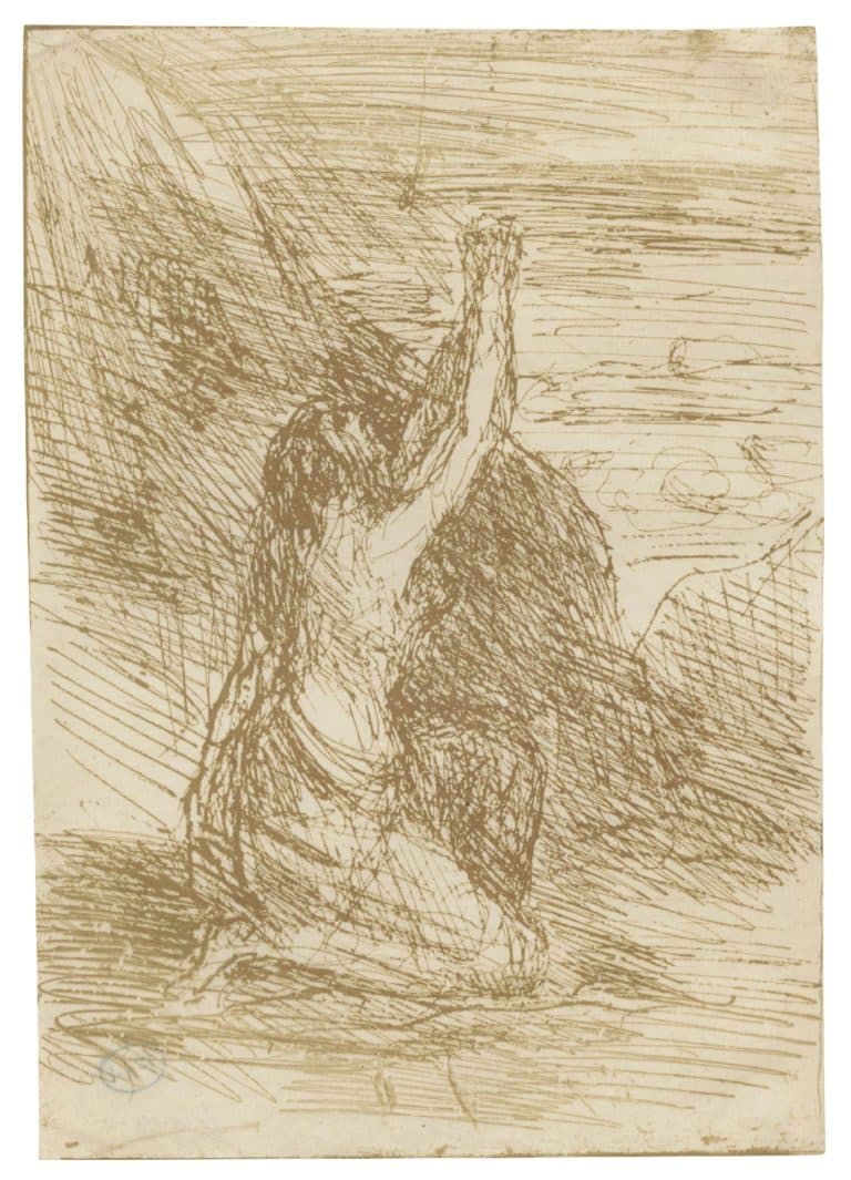 Né à Paris en 1796, où il mourut en 1875, Jean-Baptiste Camille Corot fut certainement le paysagiste le plus apprécié, si ce n’est le plus vénéré, de son siècle. Formé brièvement auprès de Michallon puis de Bertin, inspiré par Poussin et Valenciennes, profondément marqué par ses voyages italiens successifs, Corot fut le grand peintre de la lumière que l’on sait (lumière qu’il expérimenta au gré d’une vie volontiers nomade), en même temps qu’il se distingua par une production plus intime de portraits et de figures. Attaché à l’étude d’après nature (bien qu’il composât ses œuvres essentiellement en atelier), Corot fut un dessinateur prolifique et varié, usant de la mine de plomb et de la plume comme du fusain, tour à tour soucieux du détail, elliptique ou synthétique. Le graveur, moins célèbre peut-être, n’en est pas moins remarquable et ses autographies, ses eaux-fortes (medium dont il participa alors au renouveau) et surtout ses clichés-verre (technique moderne s’il en fut, avec laquelle il donna près de soixante-dix pièces) retrouvent souvent la spontanéité et la vivacité de ses plus belles feuilles dessinées.