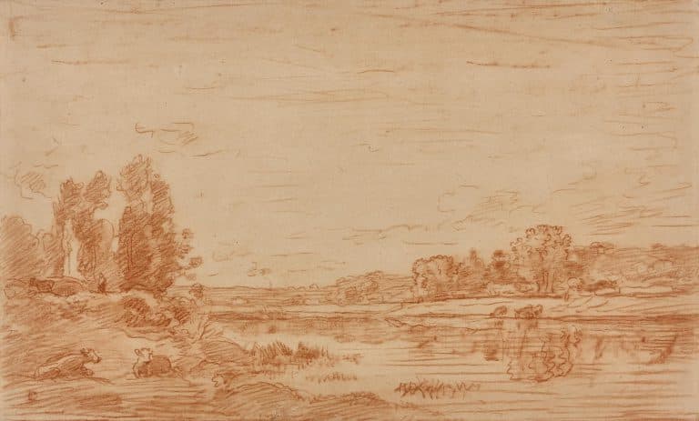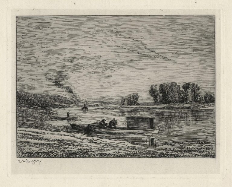 Membre éminent de l’École de Barbizon, ami de Corot, Charles-François Daubigny, en plus d’avoir été un peintre respecté et recherché, fut un graveur de talent. S’il se consacra dans sa jeunesse à l’illustration, pour laquelle il donna de nombreux dessins, il entreprit par la suite de publier indépendamment ses eaux-fortes (au nombre de cent vingt-sept, parfois sur un fond d’aquatinte et souvent reprises à la pointe sèche) et ses clichés-verre (dix-huit pièces dans cette technique moderne à laquelle il se livra avec Corot). Comme ses toiles, ses gravures représentent principalement de charmants sous-bois et de calmes plans d’eau qui laissent à la lumière (aux réserves du papier) l’occasion de se répandre et de vibrer. Daubigny réalisa par ailleurs de nombreux dessins, principalement des études d’après-nature.