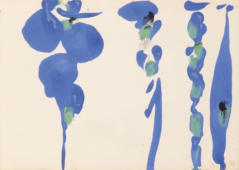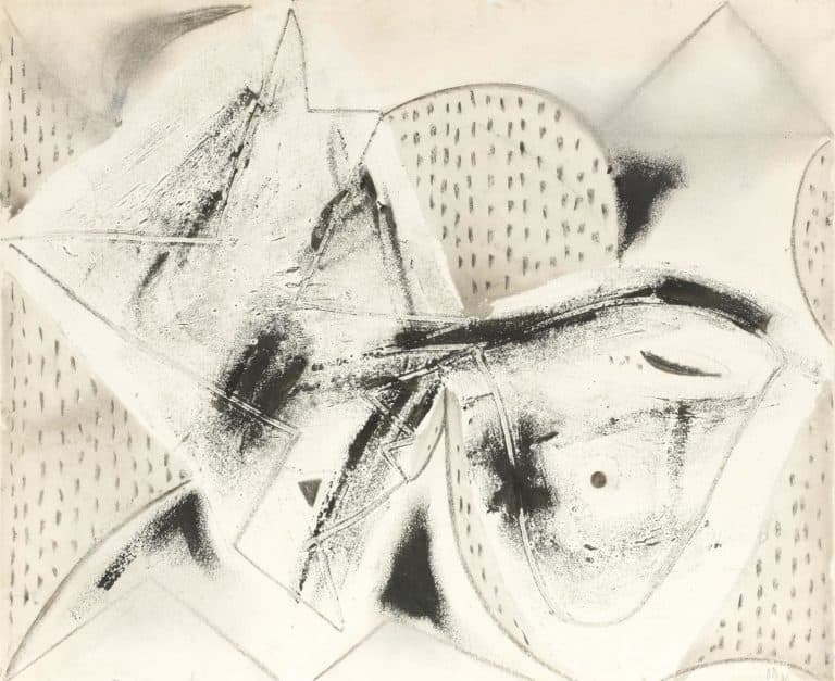 Après avoir réalisé ses toutes premières toiles abstraites pendant l’hiver 1942-1943, Debré fait son expérience lithographique dans l’atelier de Jean Pons, rue de Vaugirard. A la même époque, il produit de nombreux dessins à l’encre de Chine qui sont très calligraphiques. C’est à cette période qu’apparaît l’appellation de signes-personnages.
