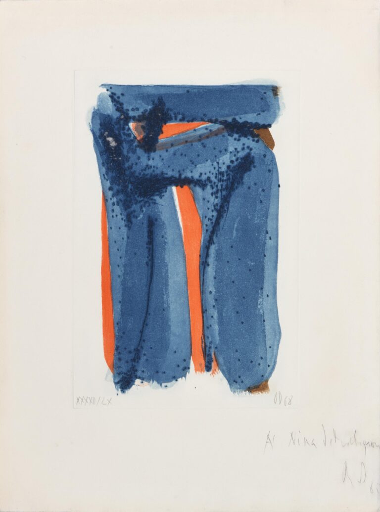 Cette série des signes-personnages se développe surtout à partir de 1945 avec la volonté de traduire, par l’expressivité du geste, son émotion face à l’horreur des camps de concentration. Il paraissait alors inconcevable pour l’artiste de ne pas s’exprimer. Cependant, aucune figuration ne semblait pouvoir illustrer son choc ; c’est un signe mi-abstrait, brutal et frénétique, inspiré par une réalité dont Olivier Debré s’est approprié le souvenir, qui est choisi pour véhiculer ses sensations et ses impressions. L’artiste se pose dès ce moment clairement la question de l’influence du psychisme et de l’émotion sur la forme. L’usage veut qu’il soit classé parmi les peintres de l’abstraction lyrique, terme auquel il préférait celui d’abstraction fervente.