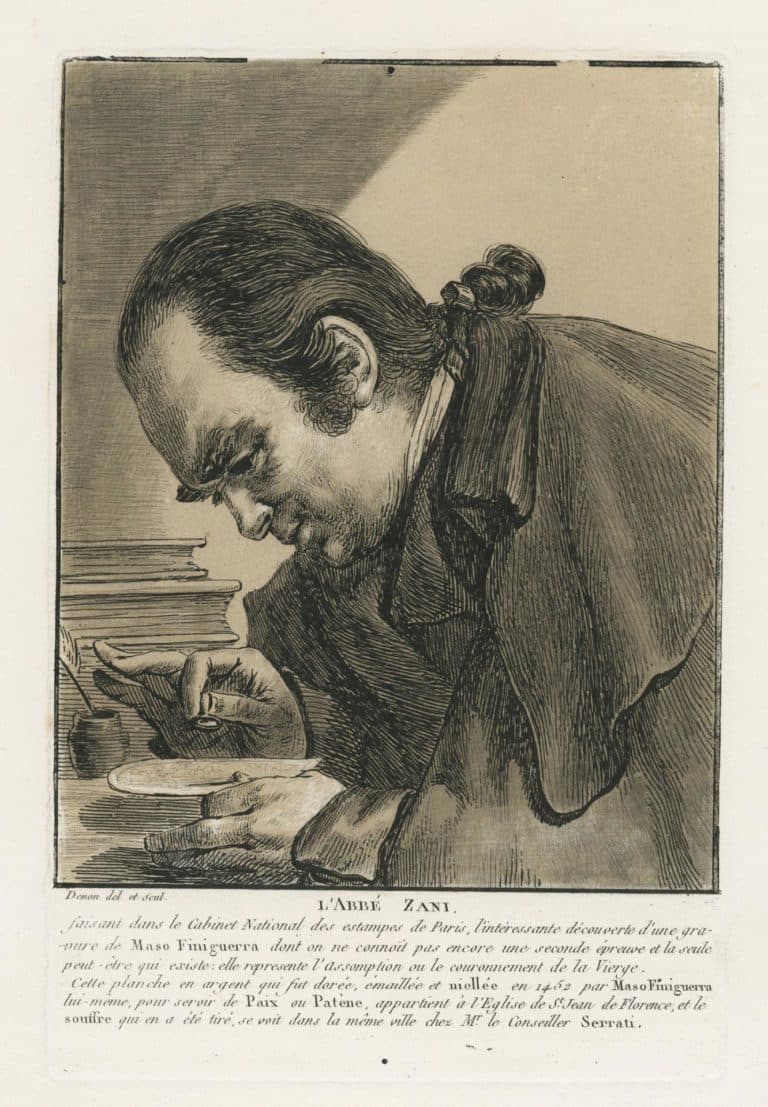 Abbé Zani, making the interesting discovery of an engraving by Maso Finiguerra in the Cabinet National des Estampes in Paris 13361 18th century