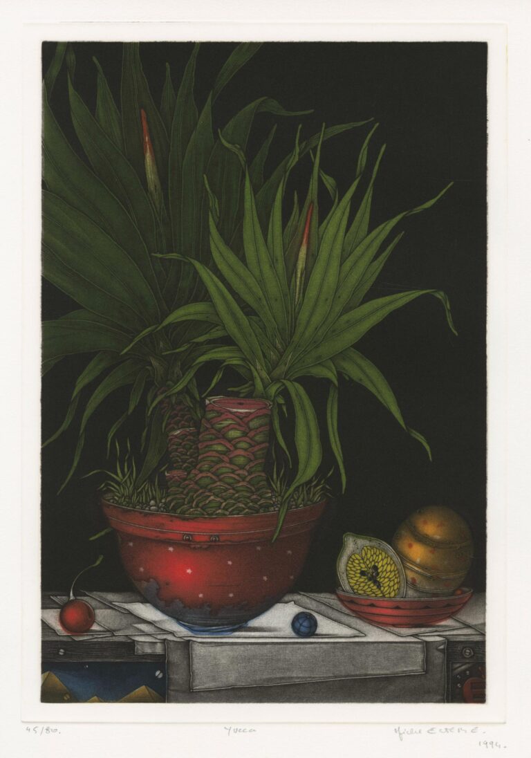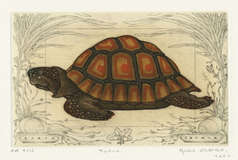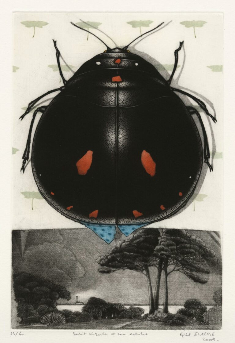 Originaire de la Gironde, Michel Estèbe suit les cours de l’École des Beaux-Arts de Bordeaux. Il s’établit dans un premier temps comme imprimeur-lithographe, puis décide de se consacrer pleinement à la gravure à partir des années 1980. Gravant d’abord au burin, puis à la manière noire monochrome, il devient adepte de la manière noire en couleur à partir de 1991, technique qu’il met au service de ses compositions chatoyantes, dont il assure lui-même l’impression.