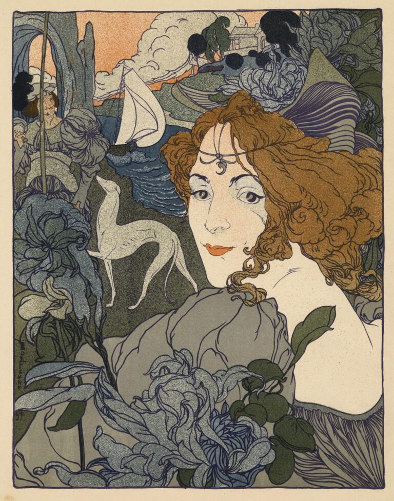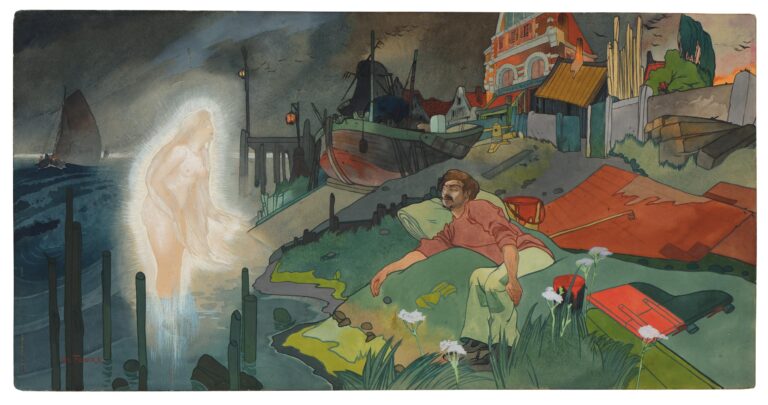 Born in Paris in 1868 to a Dutch father, an architect, and a mother from Liège, Georges de Feure, whose real name was Georges Joseph Van Sluijters, moved to the Netherlands in 1870 because of the Franco-Prussian war. In September 1886, at the age of eighteen, de Feure was admitted to the prestigious Rijksakademie voor Beeldende Kunsten in Amsterdam, but soon left to settle in Paris. From 1889, de Feure lived on the Butte Montmartre, where he frequented the likes of Henri Gabriel Ibels and Marcellin Desboutin, as well as Maurice Ravel, Erik Satie and Claude Debussy. From 1892 onwards, Georges de Feure worked as a lithographer, mainly in colour, and as a painter. It was also during this period that the artist became interested in symbolism and began to exhibit his work, notably at the Salons de la Rose+Croix and the Salon des Cent. At the beginning of the 20th century, de Feure abandoned symbolism in favour of Art Nouveau. A close friend of Siegfried Bing, he helped design and decorate the Art Nouveau pavilion for the 1900 Universal Exhibition.