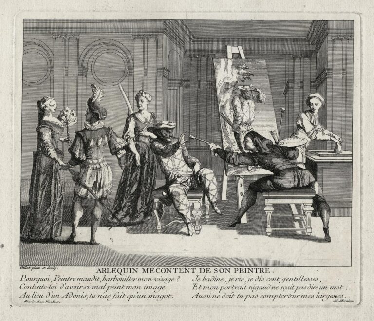 Harlequin unhappy with his painter