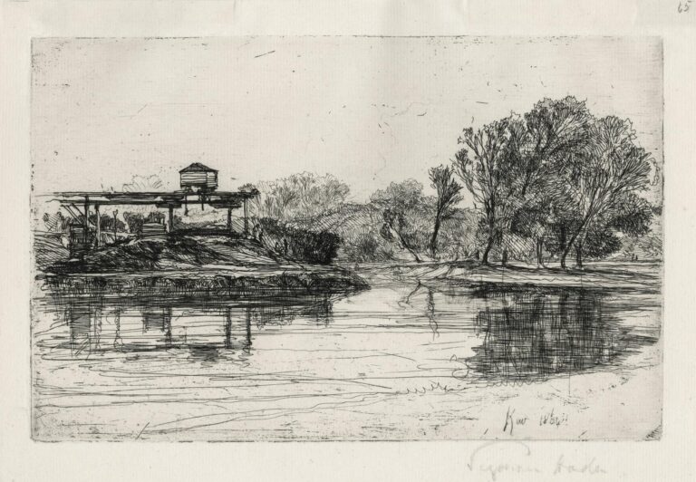 Beau-frère de Whistler dont il épouse la soeur, Haden apprend beaucoup auprès du peintre-graveur américain et les deux collaborent sur projet de série de paysages londoniens. Les paysages anglais ont en effet sa préférence, et il apprécie graver sur le motif, notamment à Erith en compagnie de son ami Charles-François Daubigny, peintre et aquafortiste français. Francis Seymour Haden est reconnu comme un grand défenseur de l’eau-forte en Angleterre, ayant contribué au regain d’intérêt pour la technique dans la seconde moitié du XIXe siècle.