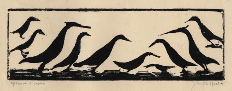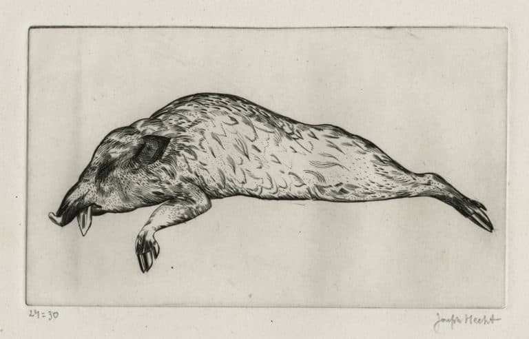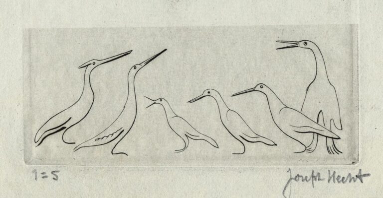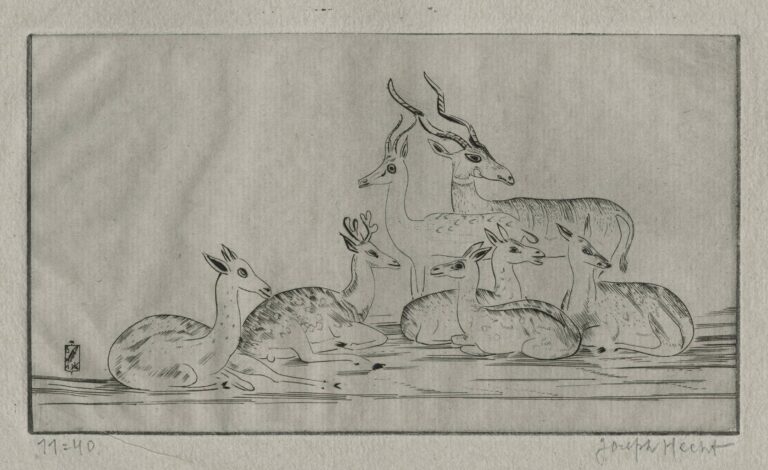Issu de la moyenne bourgeoisie juive polonaise, le peintre-graveur Joseph Hecht arriva à Paris en 1919 et s’installa dans le quartier du Montparnasse. Il se consacra essentiellement au burin, séduit par la pureté du trait.  Dans l’optique de rétablir cet art noble délaissé par la création contemporaine, il rédigea un traité sur la gravure au burin (jamais édité) et transmit sa passion à la nouvelle génération artistique via l’association La Jeune Gravure Contemporaine fondée en 1930. Il fut notamment le mentor de Stanley William Hayter qui grava ses premiers burins dans son atelier de la Cité Falguière, avant d’ouvrir son propre Atelier 17. Si ce dernier se tourna vers l’abstraction et la couleur, Hecht privilégia en revanche les sujets animaliers – étudiés au Jardin des Plantes dont il était coutumier – dans un naturalisme teinté de spiritualisme, puisant à la fois dans les miniatures persanes, les peintures pariétales préhistoriques et les enluminures médiévales.