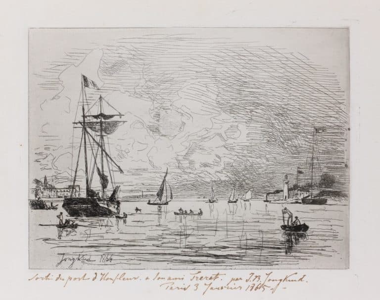 Johan Jongkind, hollandais de naissance, quitte l’école à 16 ans pour devenir clerc de notaire. Son père décède l’année suivante et sa mère lui permet alors d’aller à La Haye pour y suivre les cours de l’Académie de Dessin. En 1845, le Prince d’Orange, futur Guillaume III, lui paie des cours de français et subventionne son départ pour Paris où il entre, à 27 ans, dans l’atelier d’Eugène Isabey puis fréquente celui de François-Édouard Picot avant de commencer une longue série de voyages en France et au-delà. Dans les années 1850, l’argent vient à lui manquer, il déménage en banlieue parisienne et sombre un temps dans la dépression. En 1855, suite à la mort de sa mère et à ses problèmes financiers, il retourne en Hollande. Ce sont ses amis qui, sur l’initiative du comte Doria, collectionneur, lui permettent de revenir en France en organisant, en 1860, une vente aux enchères à son profit. Il séjourne pour la première fois dans la commune de Châbons en 1873, avec son amie Joséphine Fesser dont le fils travaille en tant que cuisinier au château de Pupetières. Jusqu’en 1877, il y retourne presque chaque année et réalise de nombreuses aquarelles du domaine et de ses environs. À partir de cette période, il se rend très régulièrement en Dauphiné où il meurt, en 1891, dans l’asile Saint-Robert de Saint-Égrève.