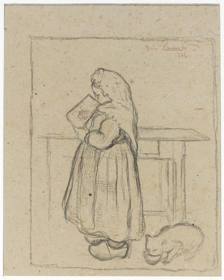 Little Girl Wearing Sabots and Her Cat