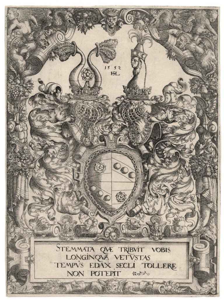 Lautensack – Les armoiries de Oswald von Eckh et de sa femme née Piencsenau