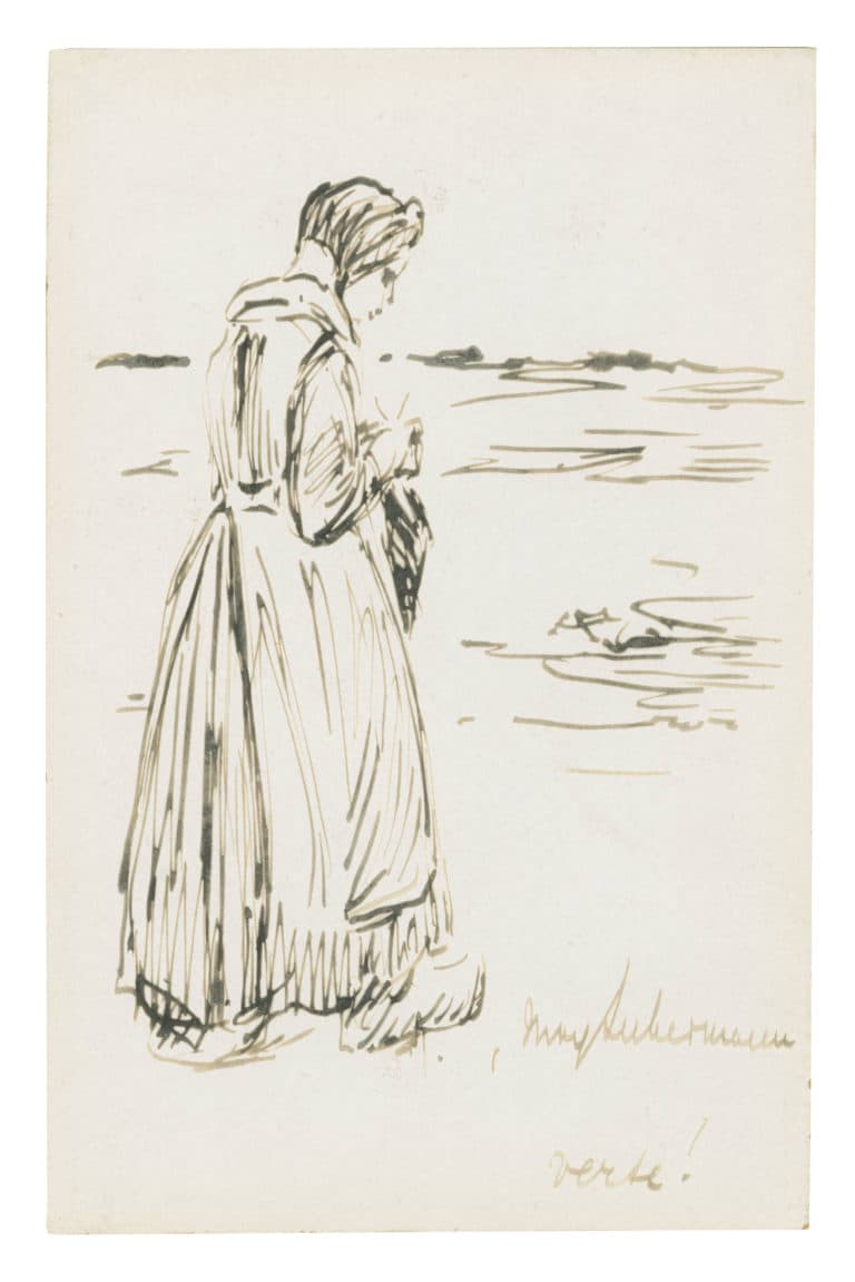 Max Liebermann, né le 20 juillet 1847, est le fils d’un riche industriel juif allemand, Louis Liebermann et grandit à Berlin. Bien que bon élève en classe, il déteste tous les établissements scolaires qu’il fréquente et passe pour un élève peu assidu. Malgré le peu d’enthousiasme de ses parents, il s’inscrit à des cours de peinture et de dessin auprès de Carl Steffeck. Il publie ses premières œuvres à treize ans, mais son père ne faisant pas grand cas de son don pour le dessin lui interdit de les publier sous le nom de Liebermann. Après son baccalauréat, il entre à l’université Humbolt de Berlin mais cela n’est qu’une excuse pour continuer à peindre avec Carl Steffeck tout en faisant bonne figure auprès de sa famille. Il entre à l’Académie des Beaux-arts de Weimar en 1868 après s’être fait radier de l’université. En 1873, il décide de quitter l’Allemagne et installe son atelier à Montmartre, alors que Paris est la capitale mondiale des arts. Il souhaite rencontrer les peintres impressionnistes mais les tensions encore vives de la guerre franco-prussienne freinent les peintres français. En 1874, il séjourne à Barbizon et découvre Daubigny, Corot et surtout Millet. Sa difficulté à intéresser le public français pour des raisons patriotiques le pousse à quitter Paris et il séjourne alors au Pays-Bas, en Italie, à Munich et puis décide de retourner à Berlin où il se marie avec Martha Mackwald, la sœur de sa belle-sœur en 1884. En aout 1885, la naissance de sa fille unique, Käthe, le pousse à se consacrer à son rôle de père et l’éloigne un temps de la peinture. La fin des années 1880 le pousse vers le succès et il remporte plusieurs grands prix de peinture. Les années entre 1890 et 1910 sont marquées par son appartenance à la Sécession berlinoise et la mort de son père qui lui lègue un héritage colossal. Il est reconnu par de nombreuses académies des beaux-arts dont il devient membre et devient un peintre de vie mondaine, toute la bourgeoise berlinoise lui commandant des portraits. Une fois la guerre et la révolution passée, il devient président de l’Académie prussienne des arts de Berlin, mettant un therme à l’époque du mouvement sécessionniste. En 1927 il est célébré par le milieu de l’art à l’occasion de son 80ème anniversaire et la ville de Berlin lui consacre une exposition ainsi que le titre de citoyen d’honneur. A la fin de cette même année, il est choisi pour réaliser le portrait du président Hindenburg. Max Liebermann tombe gravement malade en 1932, le poussant à démissionner de son poste de l’Académie. En 1933, à la suite de la prise de pouvoir par le parti Nazi, il quitte toutes ses fonctions officielles et se retire de la vie publique. Il décède le 8 février 1935 sans que les médias ni l’Académie n’en fassent mention, les deux étant devenus des outils du pouvoir nazi.