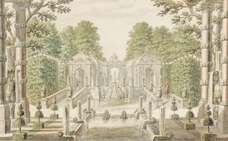 Fils de l’architecte Jean Marot (vers 1619-1679) et neveu de Pierre Gole (vers 1620-1685), ébéniste du roi, Daniel a reçu une éducation de dessinateur, graveur et architecte. De religion protestante, il décide de quitter la France après l’Édit de Nantes en 1685 et de s’installer à La Haye. Il est nommé architecte du prince Guillaume d’Orange, roi de Grande-Bretagne sous le nom de Guillaume III (1650-1702). Marot a joué un rôle important dans l’introduction de l’approche française du décor et de l’ornementation. Pour la publication de ses estampes, il avait obtenu des Etats généraux de la Hollande et de West-Friesland un privilège en 1687 pour une période de 15 ans. Le succès de ses estampes qu’il a lui-même gravées à l’eau-forte et éditées explique qu’il ait eu une influence aux Pays-Bas, en Angleterre et dans les pays alémaniques. Le groupe des dessins connus est relativement restreint, Ozinga n’en énumère que 49, dont 6 pour le théâtre.