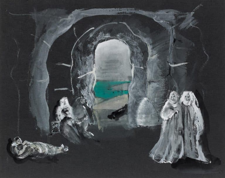 Dès 1954, il conçoit des décors et des costumes pour le théâtre. Il a notamment travaillé avec Nicolas Bataille, Laurent Terzieff, Maurice Jacquemont, Henri Ronse et Jean Bollery. De son activité de décorateur de théâtre, il dira lui-même que les poètes et les écrivains qu’il a décorés faisaient, à quelques exceptions près, partie intégrante de son musée imaginaire et étaient indissociables de son travail de peintre. Toutes ses oeuvres baignent dans une atmosphère onirique, chimérique. D’une part, on rencontre des encres où s’entremêlent ornements minéraux, végétaux et formes humaines. D’autre part, il existe des aquarelles ou gouaches représentant des paysages désertiques, des dunes, qui évoquent ceux que Quiroga a pu voir au Maroc en 1961, mais dont on comprend par leur style (fluidité, transparence, aplats de couleur), qu’elles sont surtout des images que propose un peintre qui aime à rêver d’ailleurs et auxquelles font écho ses visions théâtrales. Certaines figures errent parfois dans ces paysages et témoignent de la fascination de l’artiste pour Christian Bérard.
