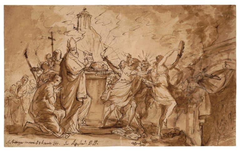 De Lukas Stipperger et de sa production artistique, nous ne connaissons qu’un corpus graphique de quelques feuilles, dont le Saint Pierre du Metropolitan Museum of Art de New York et l’Adoration des bergers de la Kunsthalle d’Hamburg. Onze autres dessins sont conservés à l’Albertina de Vienne ainsi que deux autres à l’Académie des Beaux-arts de Vienne, où le peintre et graveur autrichien fut élève de 1765 à 1773. Les compositions sont souvent tracés d’une plume et encre brune lâche et rapide, généreusement animée d’un lavis brun habile à faire jaillir la lumière blanche des parties laissées en réserve. L’artiste signe et date par ailleurs systématiquement les dessins qu’il réalise.