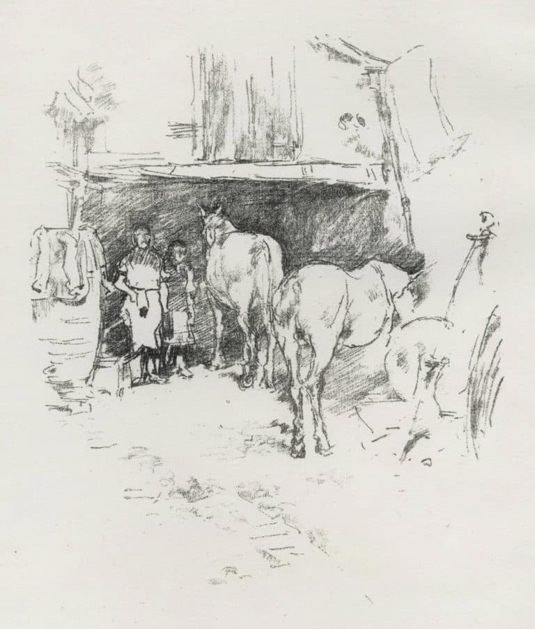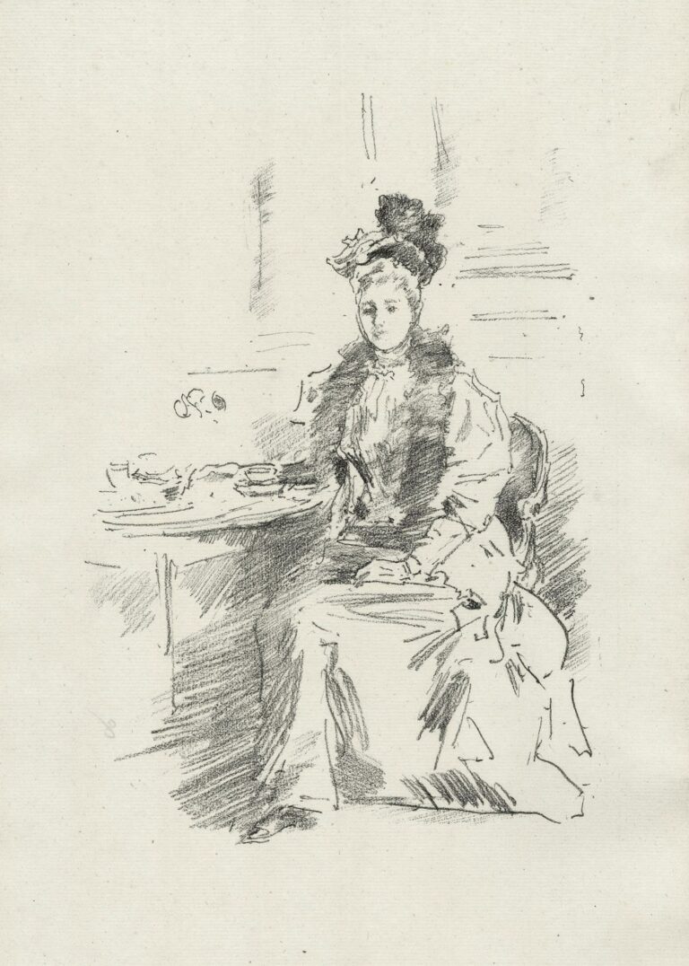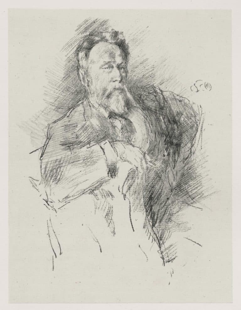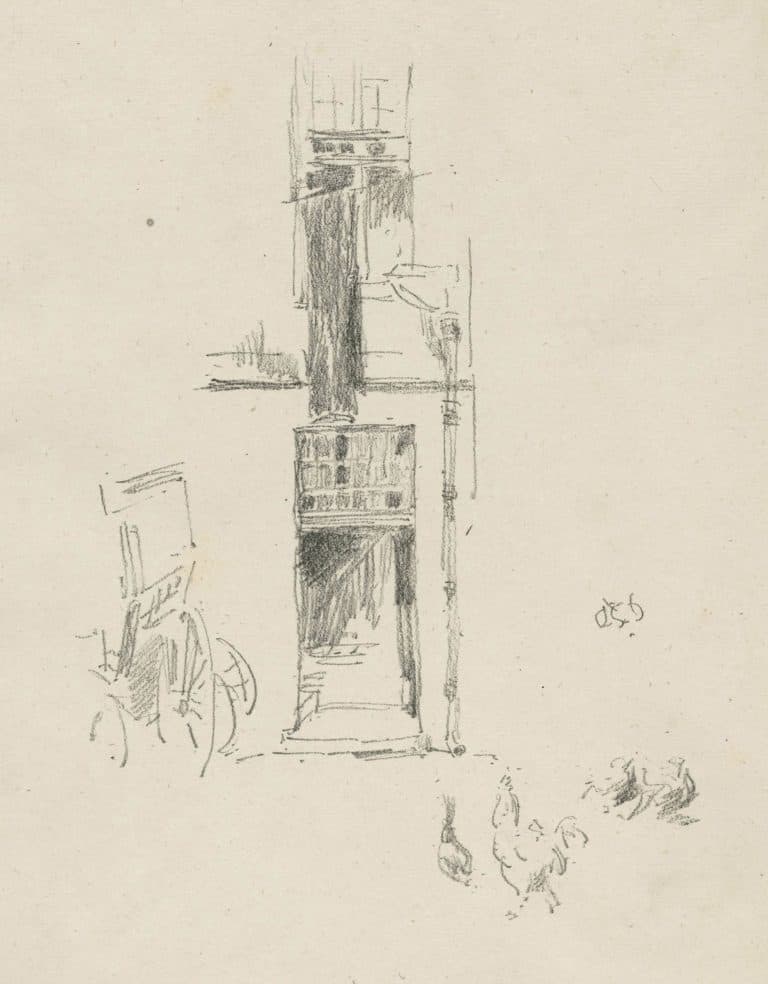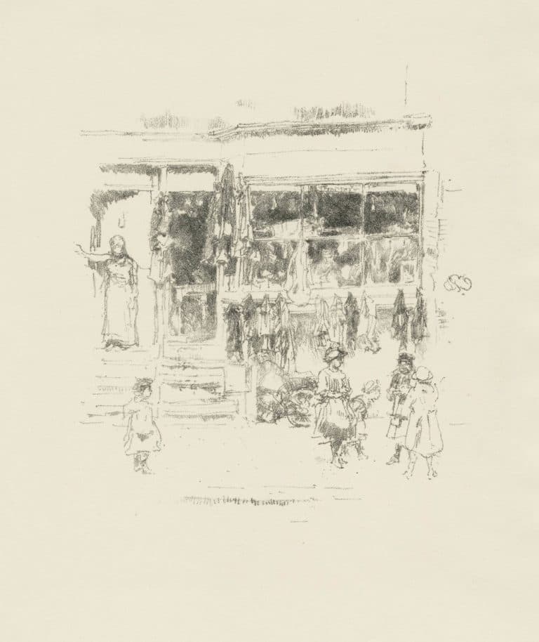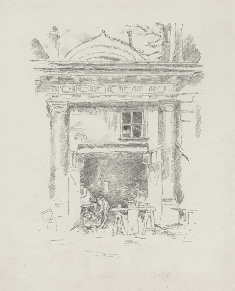 Né aux États-Unis, où il passa les vingt premières années de sa vie, Whistler ne s’épanouit dans la carrière des arts qu’en Europe. D’abord proche des milieux réalistes français, le peintre trouva sa voie propre dans les différents tableaux de Nocturnes, d’Arrangements et d’Harmonies où le défenseur de l’art pour l’art put s’intéresser davantage à la suggestion des sensations qu’à la description du motif, à l’union des tons plutôt qu’au dessin. Ses aquarelles, ses pastels et ses estampes font preuve des mêmes évolutions et des mêmes qualités. Formé à la gravure pendant ses études militaires américaines, Whistler produisit dès son arrivée en France une suite d’eaux-fortes d’inspiration naturaliste qui le distinguèrent ; les séries suivantes, consacrées pour les plus importantes à la Tamise et à Venise, sont remarquables par leur grande économie de moyens dans le jeu des tailles, que contrebalancent de savants et vaporeux effets d’encrage. Les quelque cent quatre-vingts lithographies de Whistler, réalisées pour la plupart à la fin de sa vie, sont tout aussi virtuoses (et particulièrement ses expérimentales « lithotintes »).