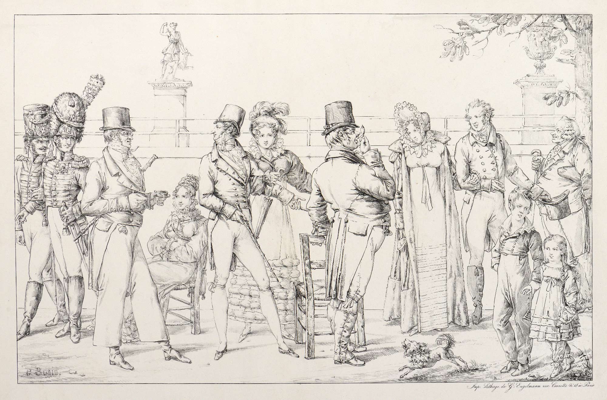 NB : Godefroy Engelmann s’installe en 1816 au 18 rue Cassette à Paris, adresse qu’il occupe jusqu’en mai 1818 ; l’adresse de l’imprimeur lithographiée sur la planche en bas à droite nous permet d’opter pour cette datation.
