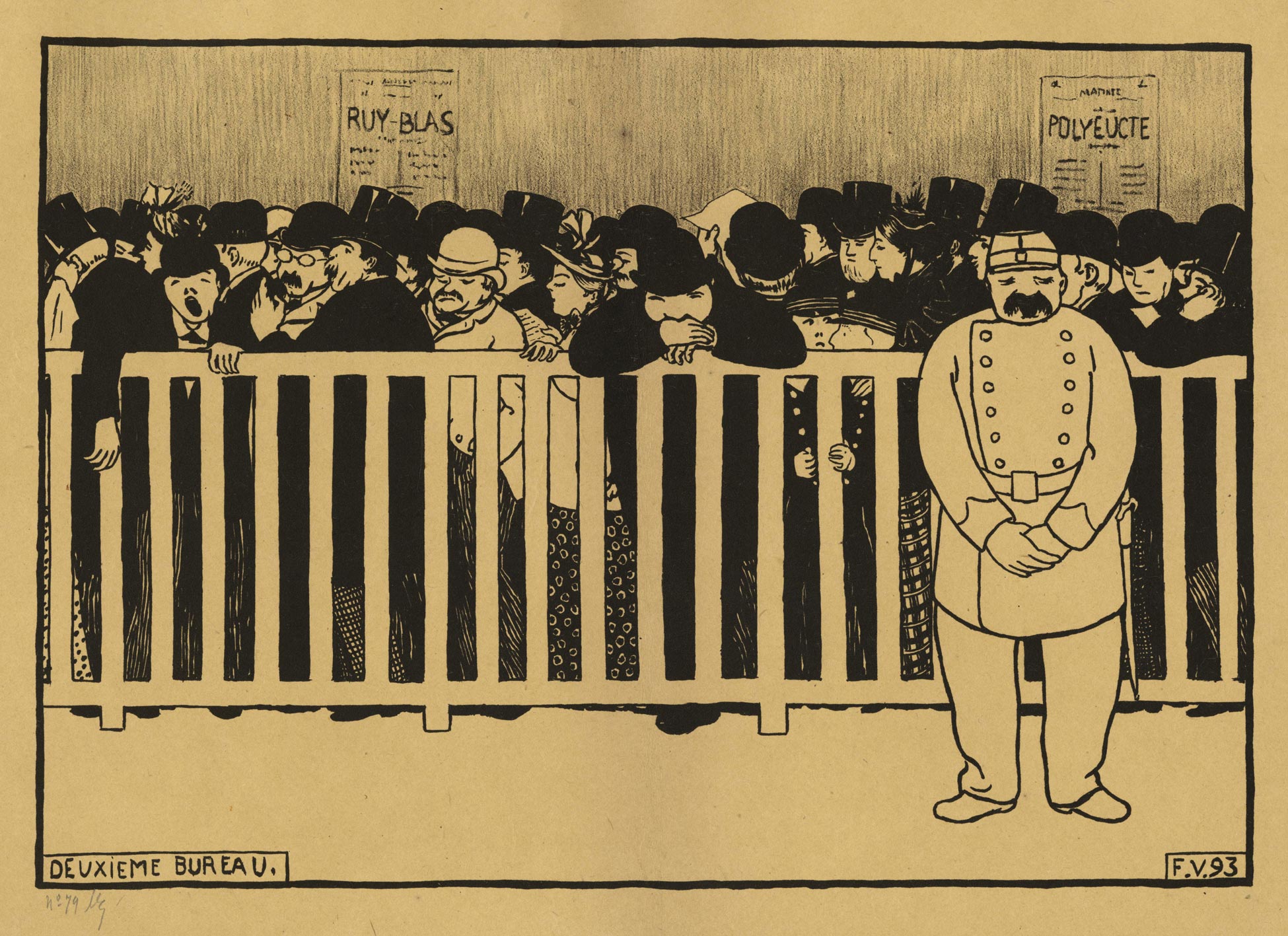 Belle épreuve sur japon safran, numérotée 79 par l’éditeur L. Joly et annotée des initiales de celui-ci L. J., d’un tirage total à une centaine d’épreuves, léger pli vertical surtout visible au verso, courte déchirure restaurée au centre du bord inférieur, d’après Maxime Vallotton et Charles Goerg ce tirage sur papier safran numéroté et aux initiales de l’éditeur est le plus recherché